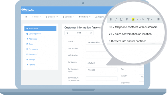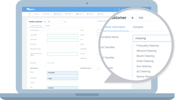 Clear and time saving customer management with Chamber of Commerce connection for filling in customer details automatically. You can add all relevant data and add several contact persons per company.