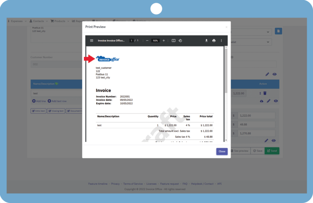 When you preview your Document, your uploaded logo should be visible in that PDF.